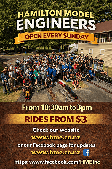 Come on down and enjoy the summer down at the Hamilton Model Engineers we're open every Sunday year round. Join us for a ride around our scenic track. Ticket prices starting at $3 for a single ride.